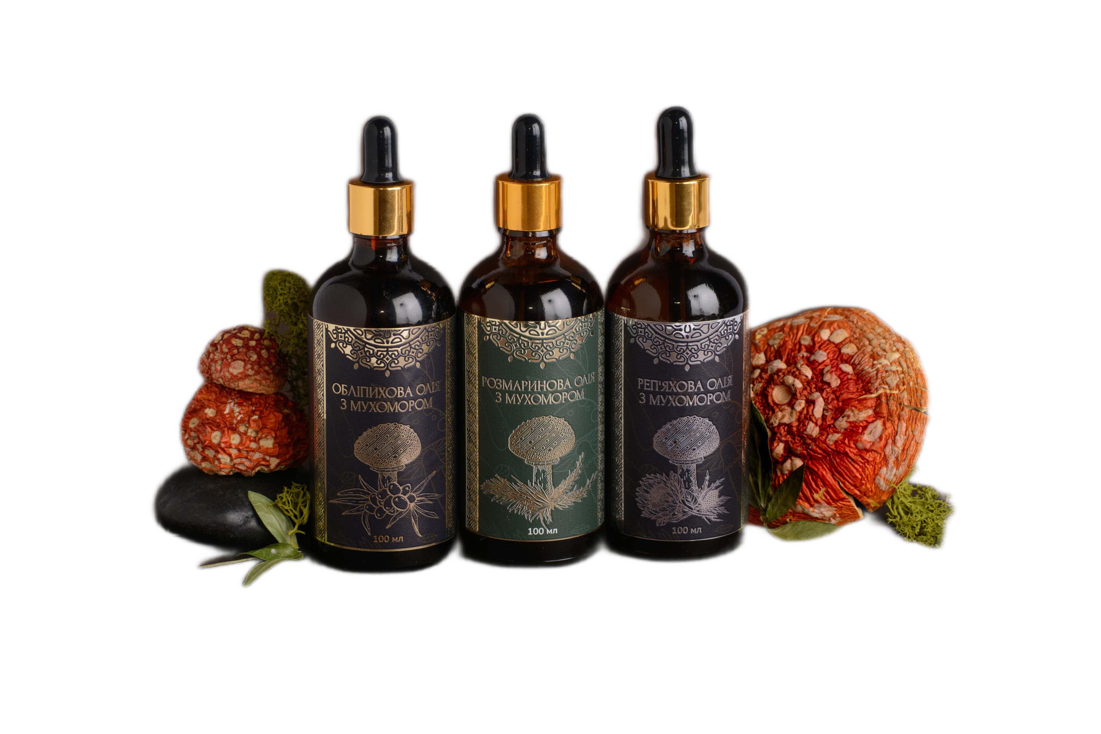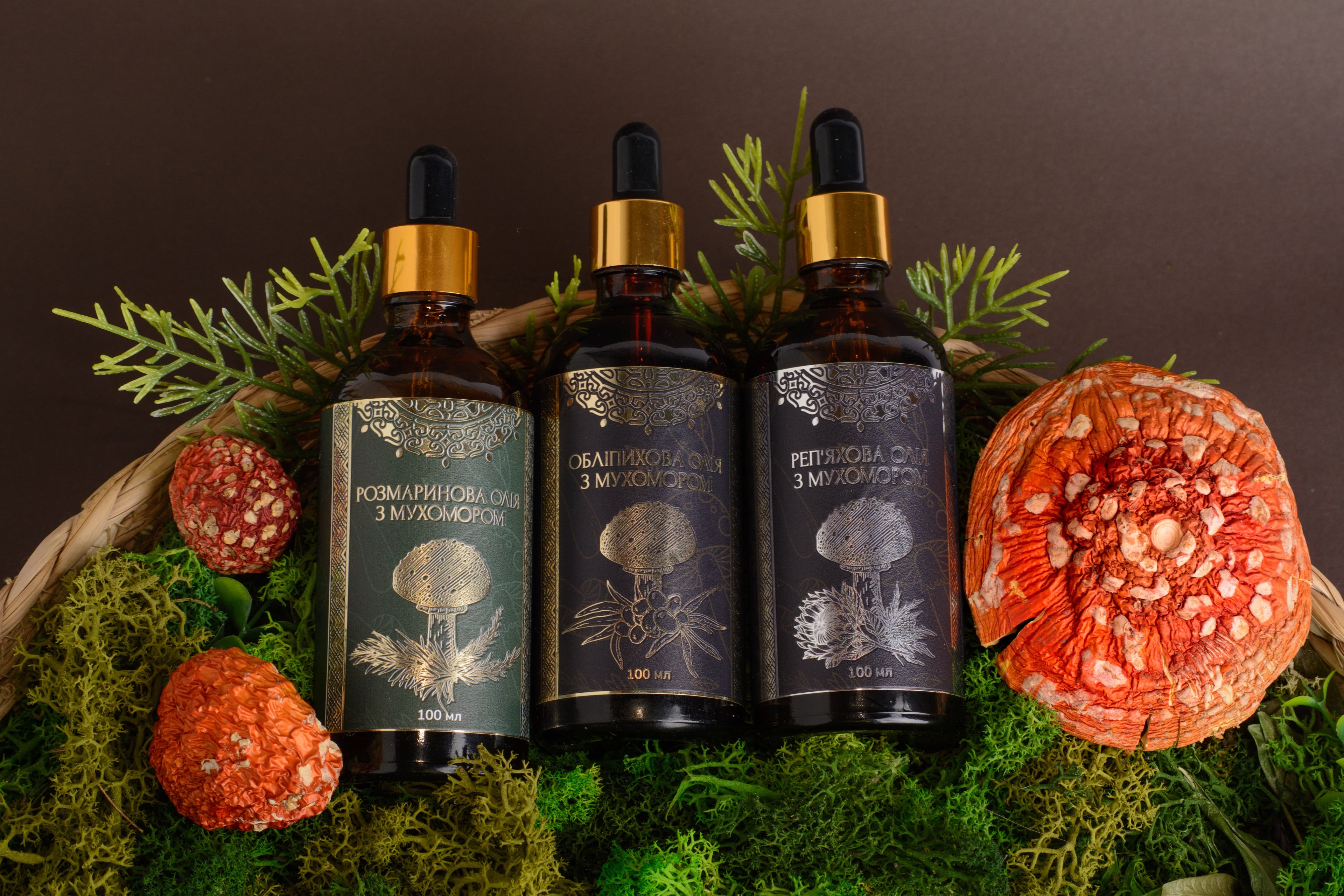 Це натуральні, але трохи незвичні косметичні олії з Мухомором червоним. Використовуй їх, і твоя шкіра та волосся будуть не лише приносити тобі задоволення, а й викликати захоплення у навколишніх.