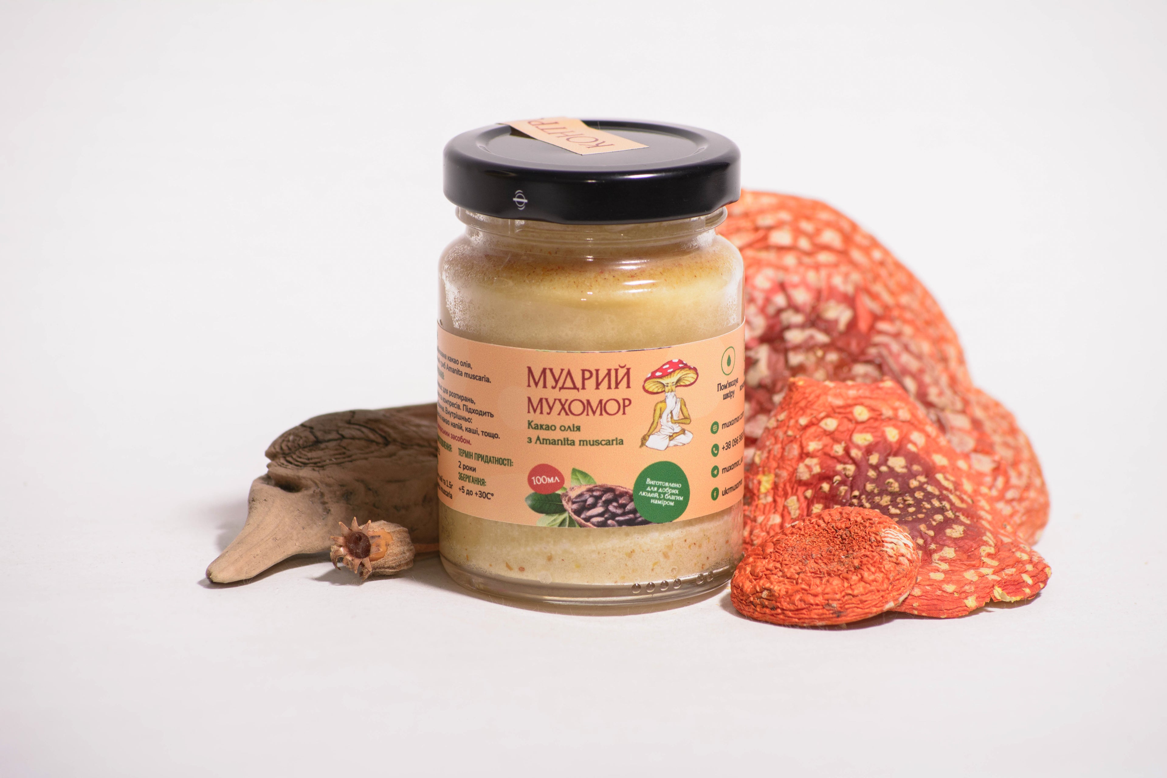 Мухомор червоний посилює дію Какао масла, додаючи йому кілька власних корисних властивостей. Гриб не лише знищує шкірних кліщів, але й: