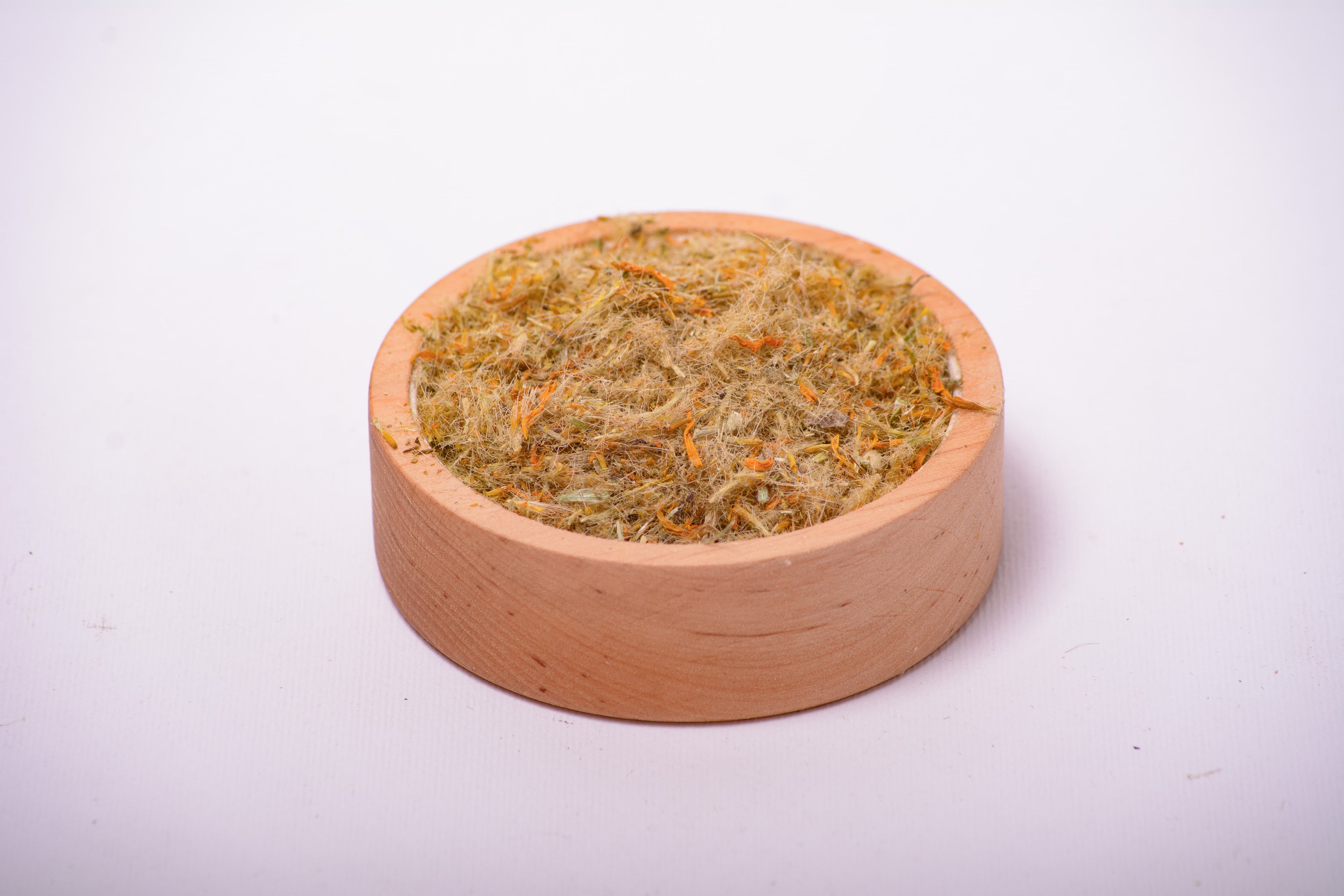 Мелені суцвіття можна змішувати з ланоліновим кремом або оливковою олією, щоб створити суміш, яка має консистенцію густої каші. Такий продукт використовують для лікування припухлостей, синців, саден, опіків та обморожень, а також для косметичних масок.