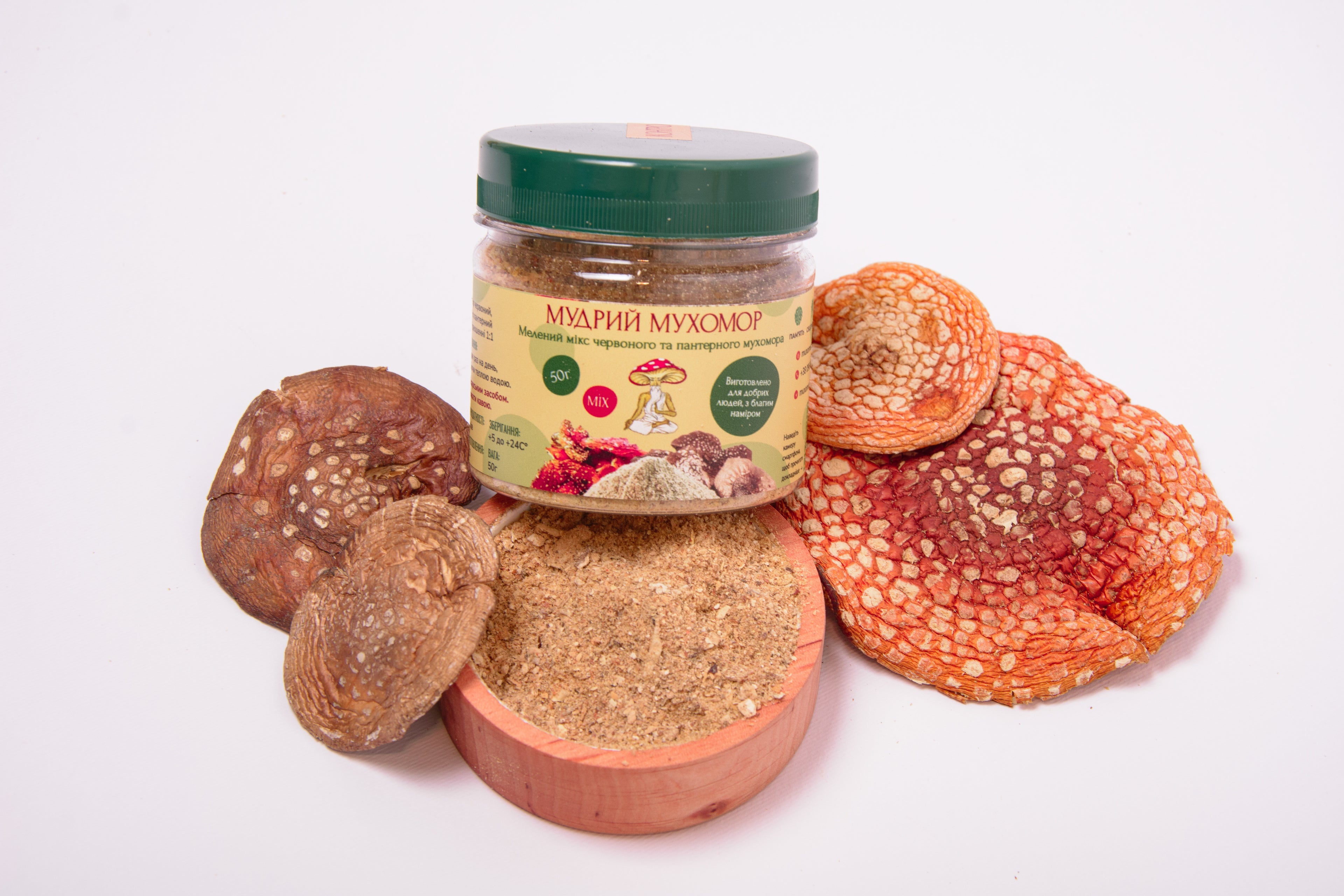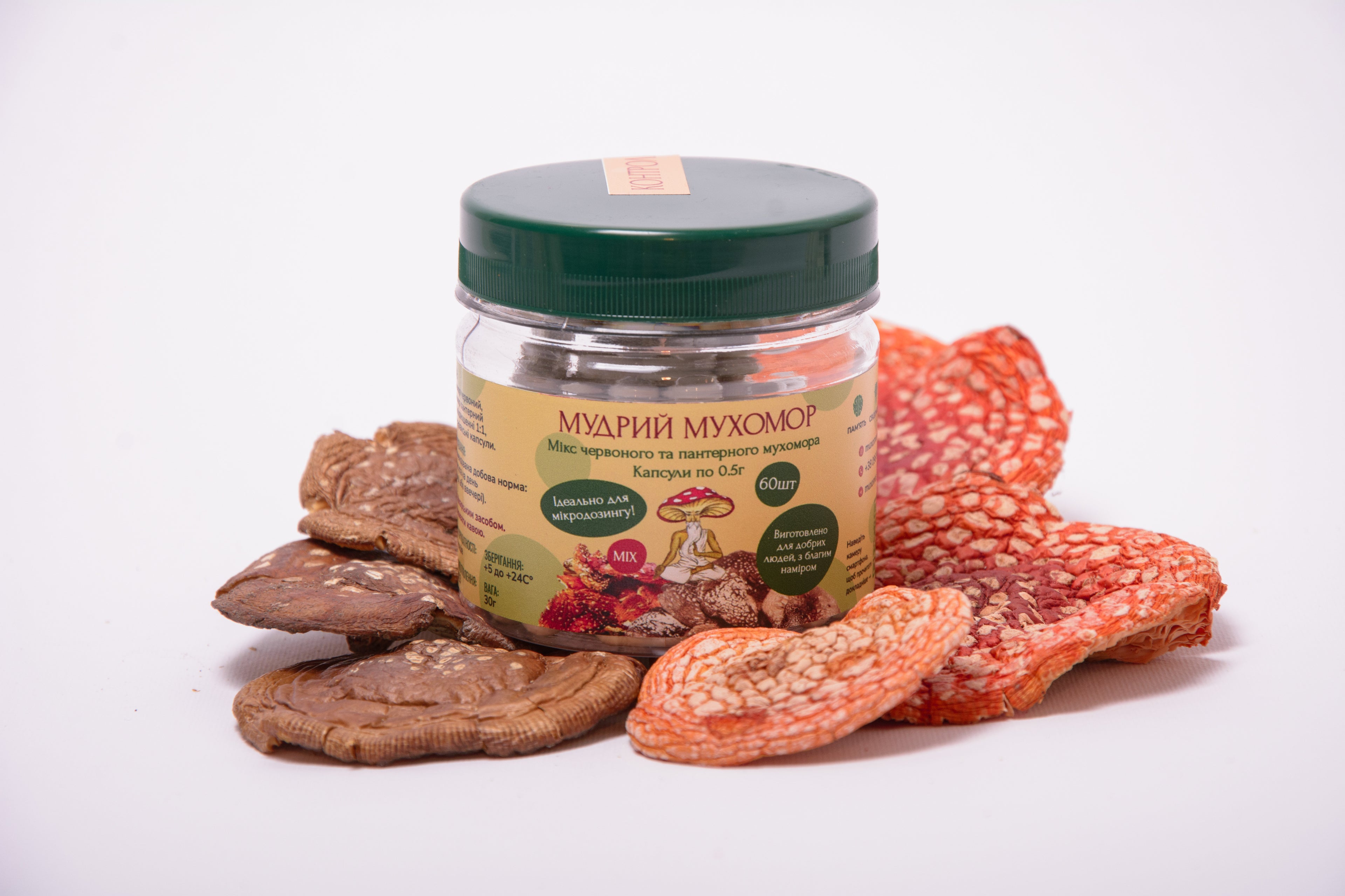 Цей мікс — вдала «зустріч» двох відомих видів Мухоморів, кожен з яких може похизуватись власним чудовим спектром корисних властивостей. Тож не дивно, що в асортименті товарів «Мудрого мухомора» у кожного є цілий ряд різних форм мікродозингу: від цілих сушених капелюшків до екстрактів і капсул. Ці гриби також входять до складу багатьох моїх продуктів: шоколадів, косметичних засобів, грибних напоїв тощо.