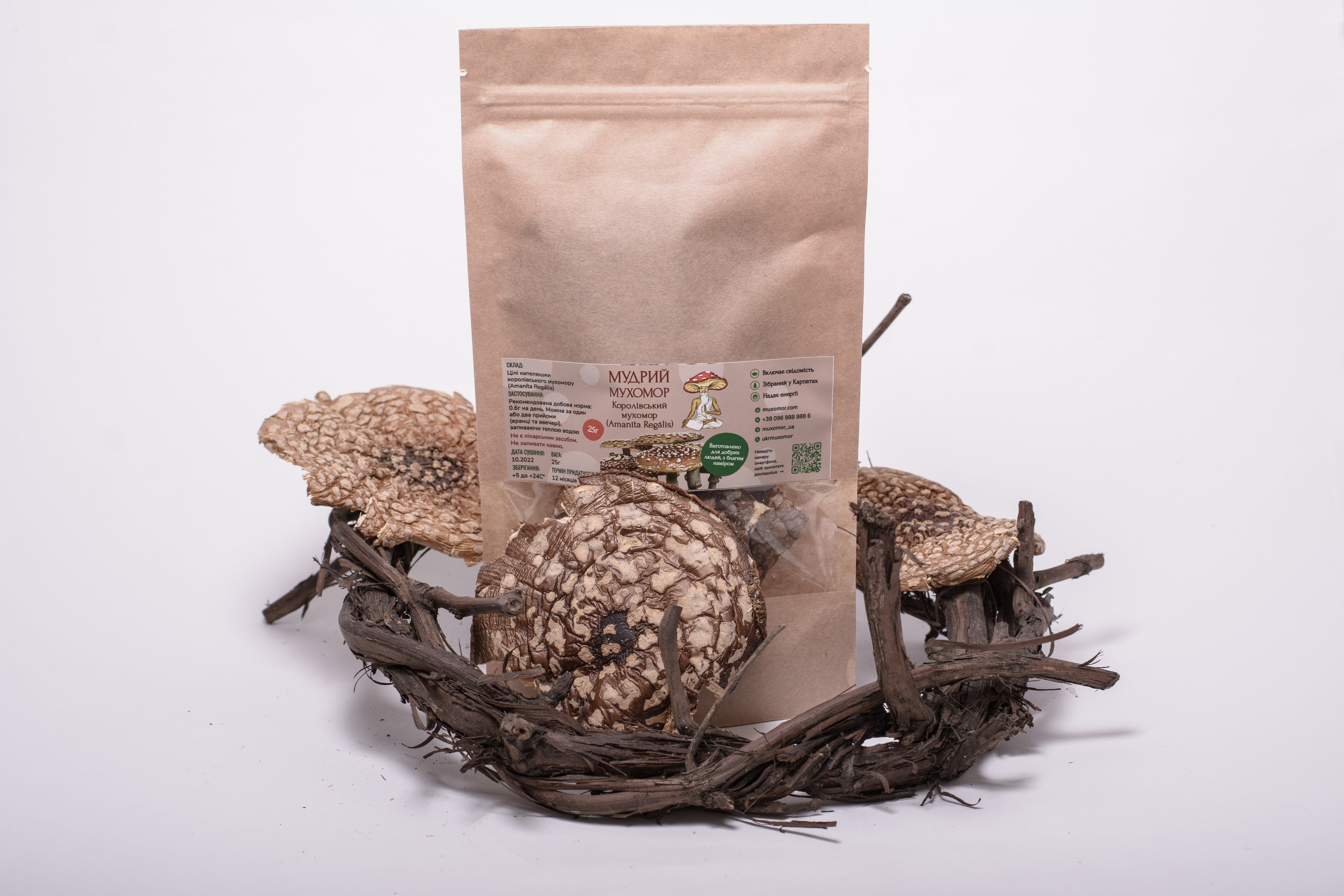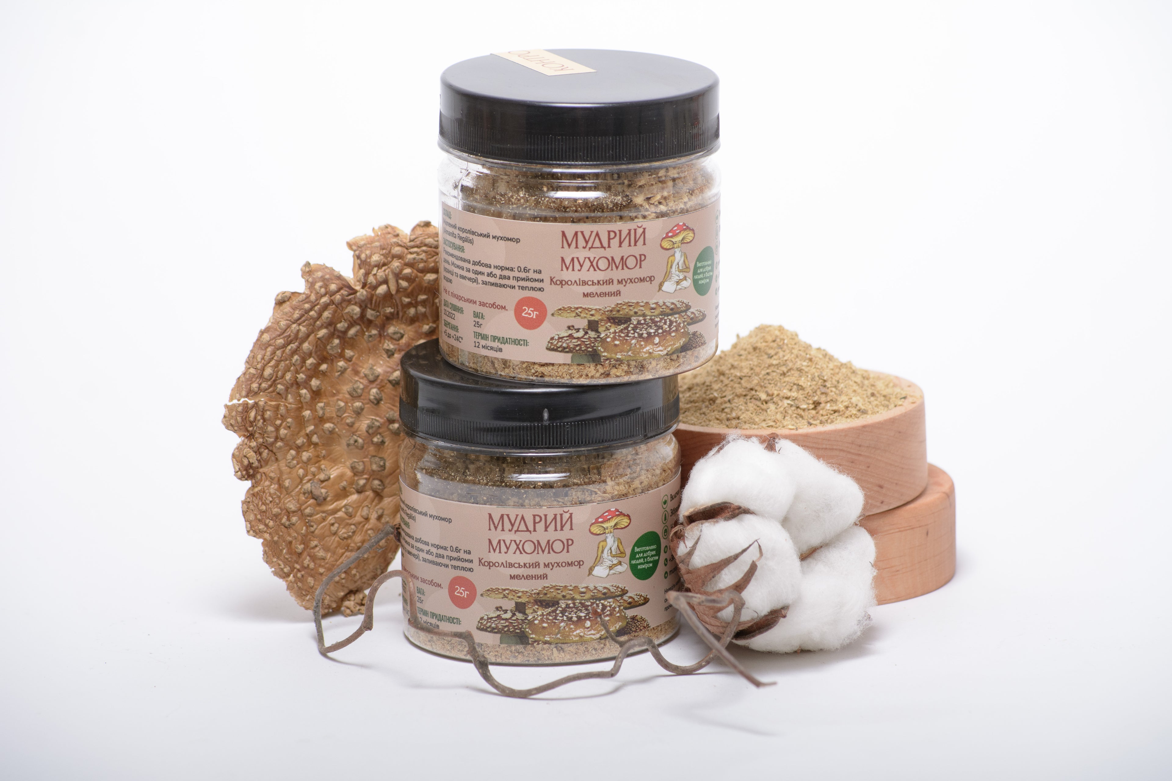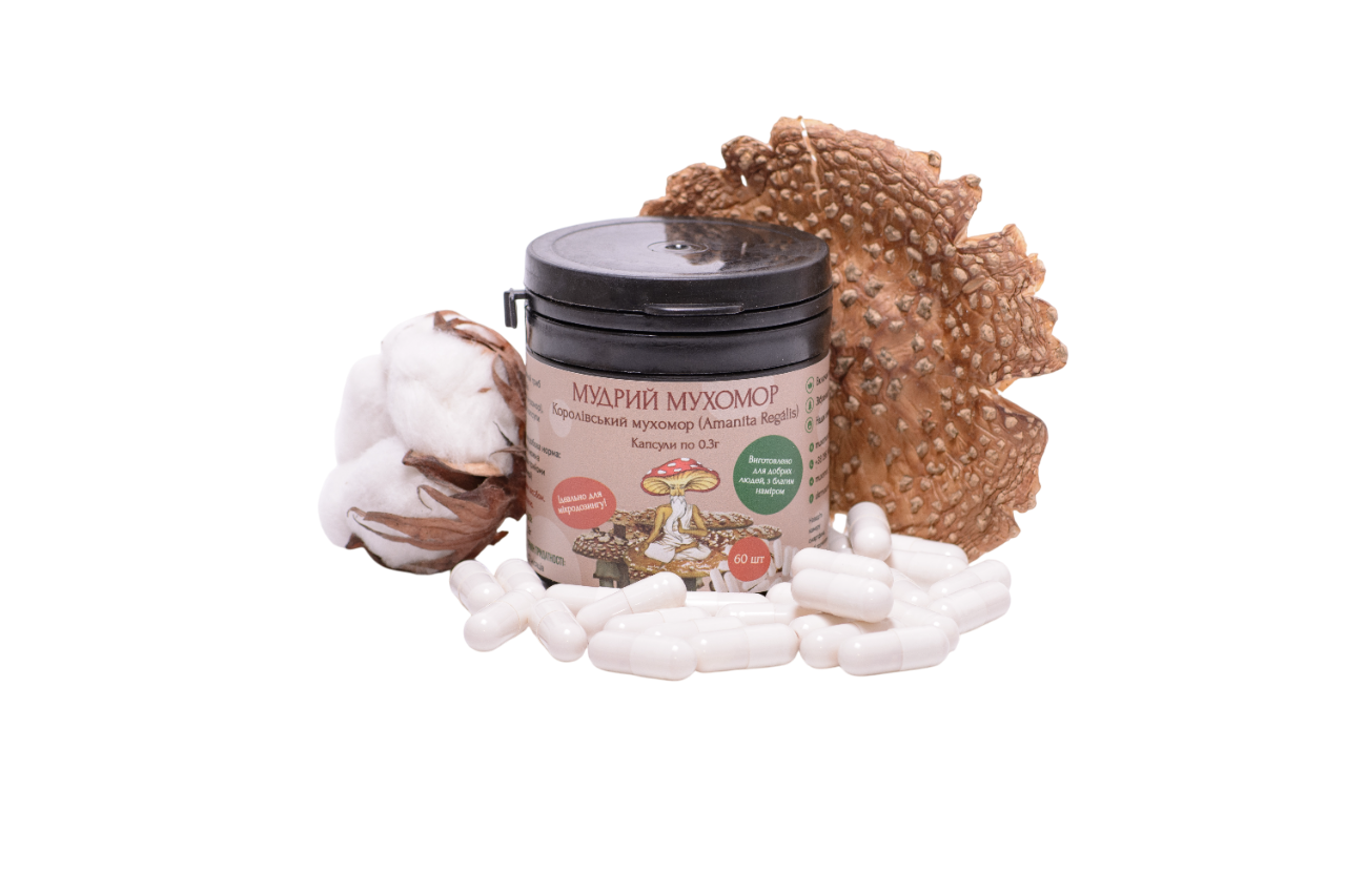 В асортименті «Мудрого мухомора» є різні форми мікродозингу Мухомора королівського: цілі чи мелені капелюшки, капсули та пігулки. Всі ці продукти є чудовим прикладом якісної натуропатії. Ми збираємо сировину для них в екологічно чистих карпатських районах, після чого гриби ретельно очищуються та сушаться. В результаті отримуємо абсолютно натуральний продукт, який підійде навіть веганам.