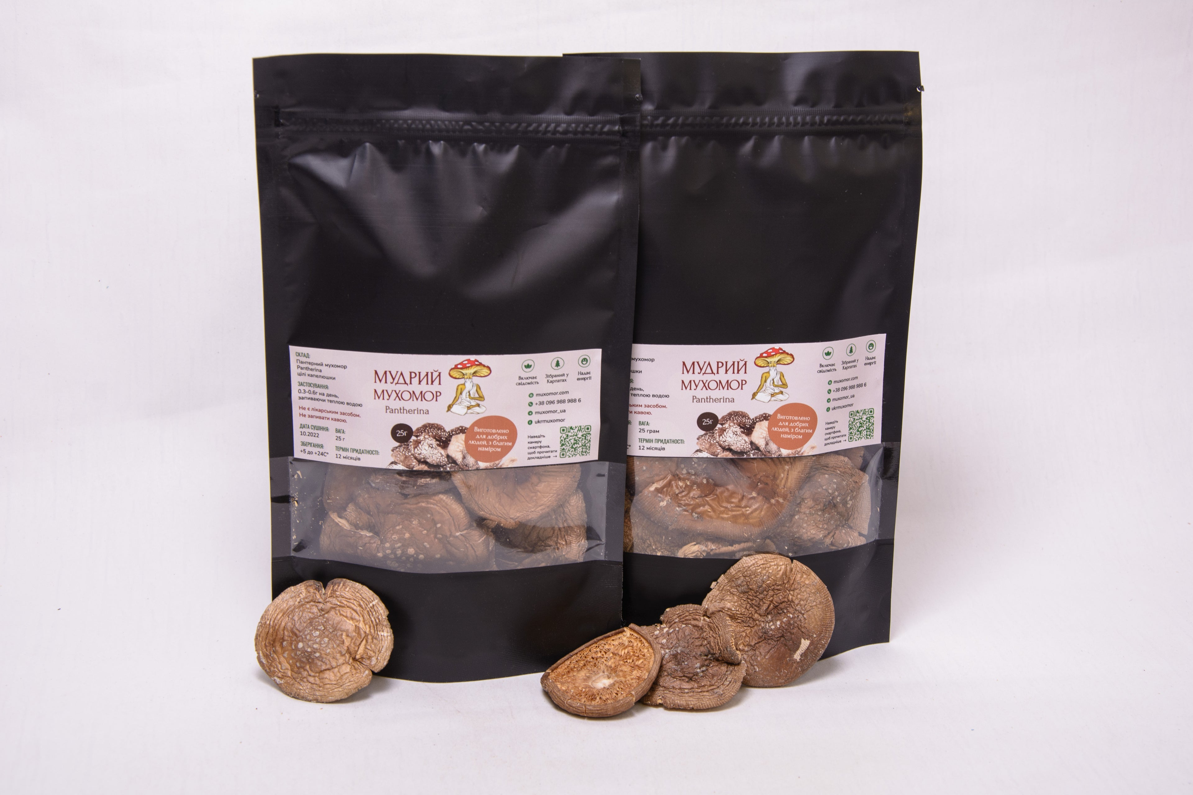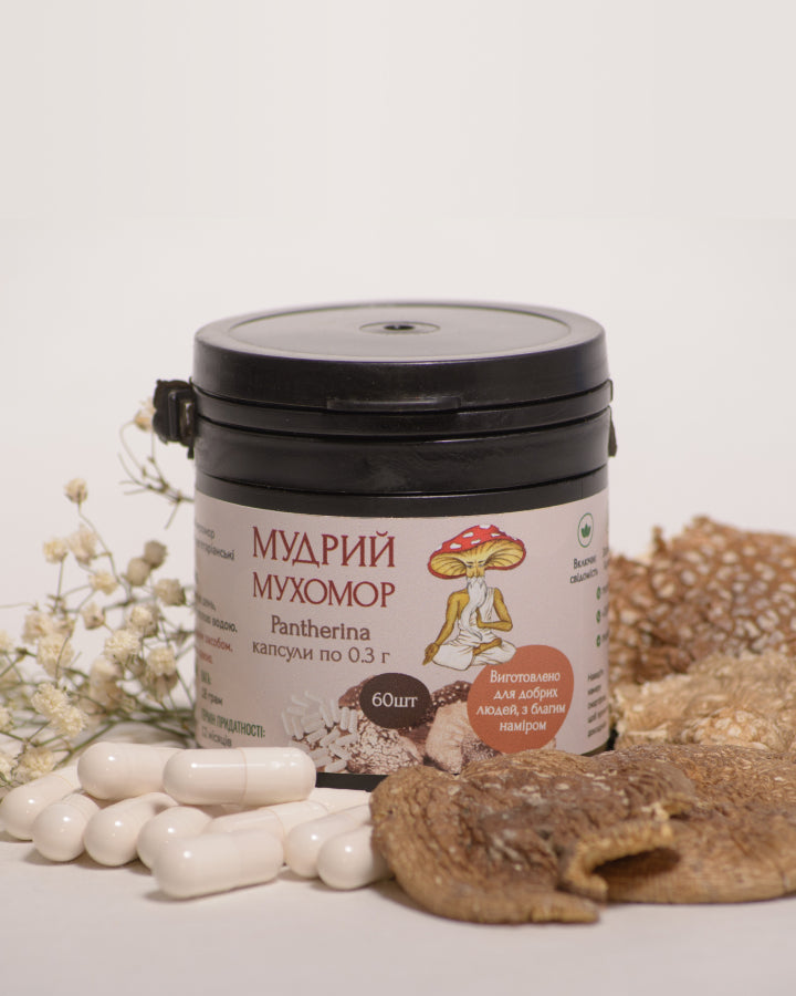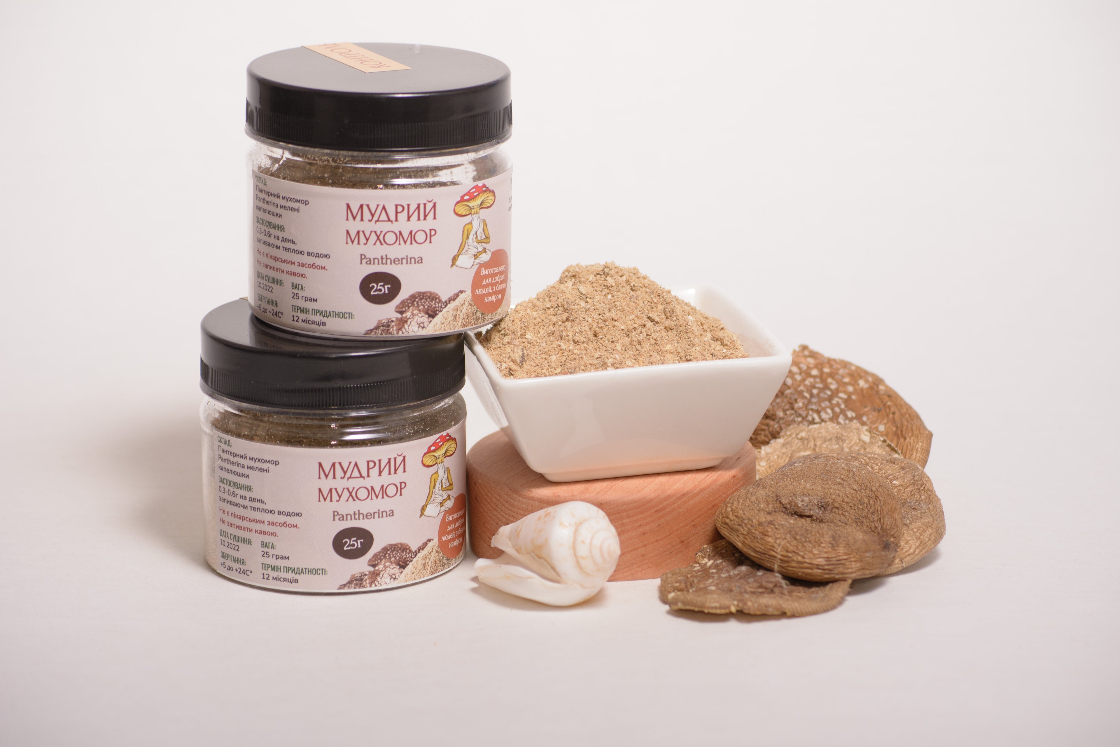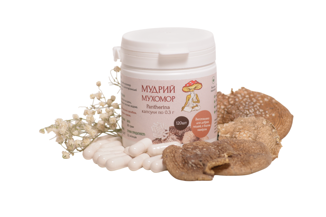 «Мудрий мухомор» пропонує різноманітні форми продуктыв з цього гриба: сушені капелюшки (цілі та подрібнені), пігулки, порошок, вегетаріанські капсули, мікси з іншими грибами та навіть цукерки! Таку увагу можна пояснити тим, що Мухомор пантерний давно відомий у народній медицині та заслужив свою високу репутацію.