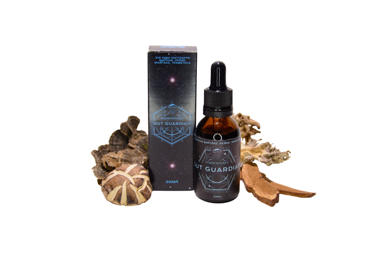 Флакончики цього екстракту також приховують у собі мікродози чотирьох грибів, що традиційно використовувались у народній медицині для поліпшення травлення та й взагалі допомоги всій травній системі. За своїм видовим складом вона майже повторює попередній продукт тільки замість Тремели в ній присутній гриб Траметес різнобаврвний.