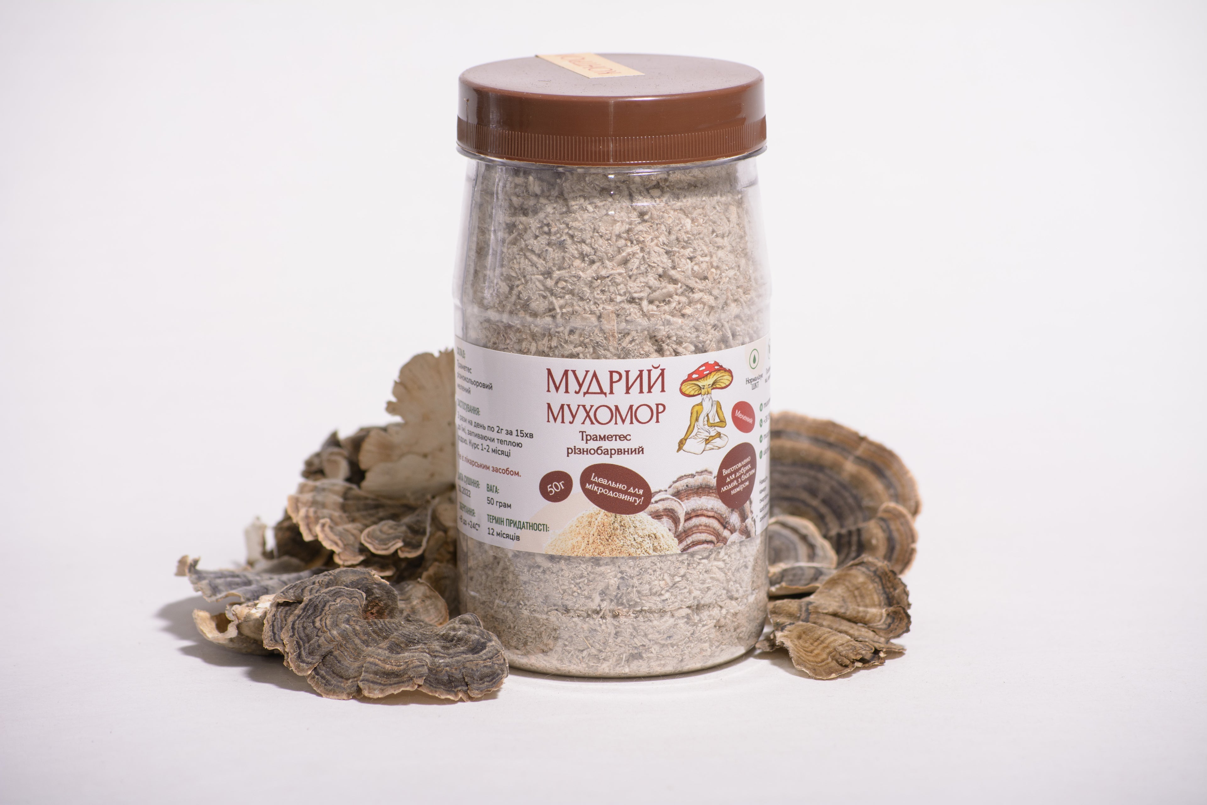 Серед численних продуктів від «Мудрого мухомора» практично неможливо не помітити Траметес різнобарвний. В моєму магазинчику цей гриб займає одне з ключових місць, причому тут його представлено у різноманітних формах, а саме: