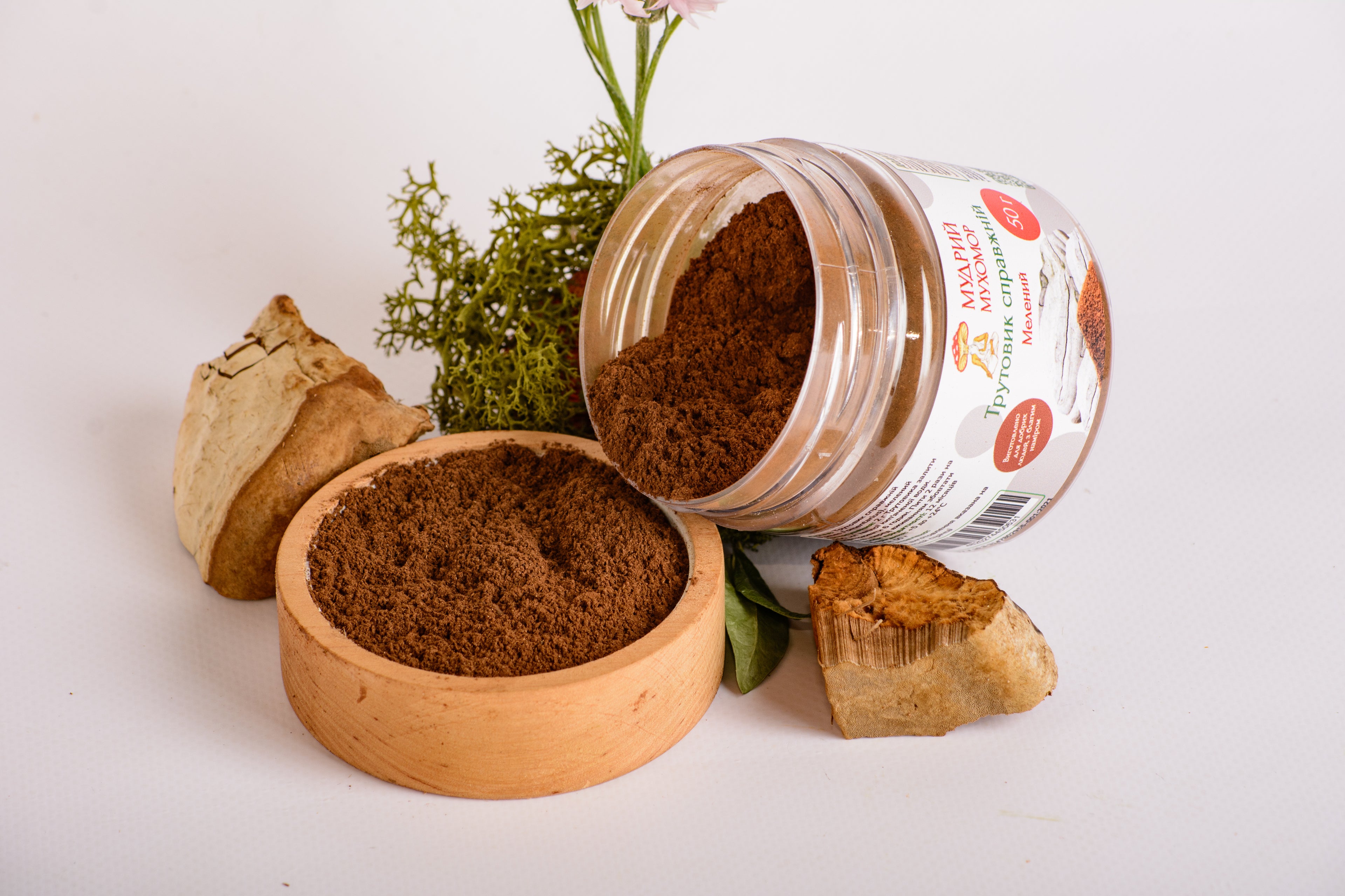 Продукти Трутовика, доступні в затишній крамничці «Мудрого мухомора», це цілий або мелений гриб. Вони доволі прості в застосуванні. З них потрібно приготувати настій, а саме: