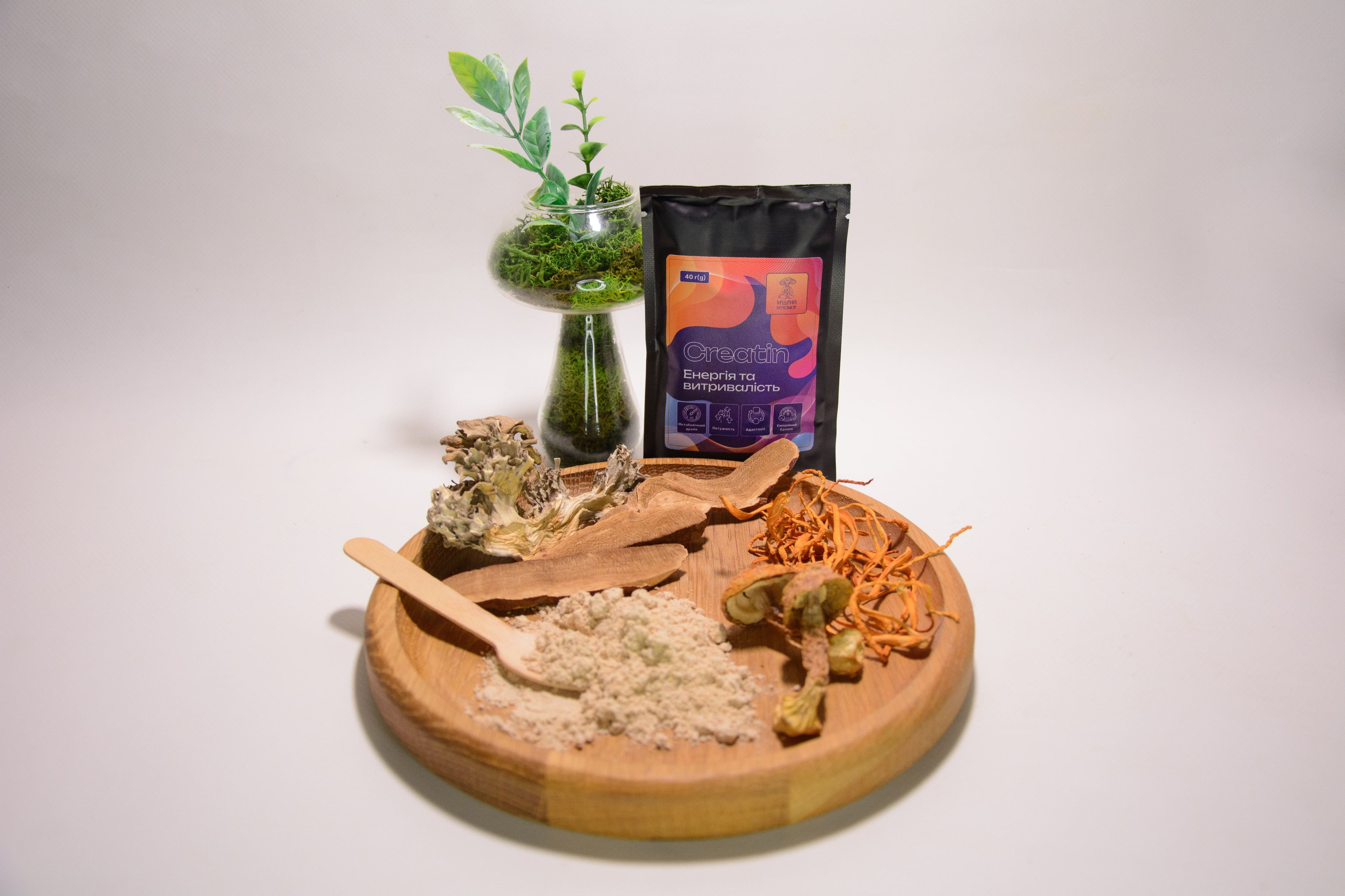 Цей продукт дозволить збільшити енергетичні запаси у м'язах і значно покращить їх витривалість. З ним тобі буде легше витримувати значні навантаження протягом тривалого часу. Суміш містить екстракти двох відомих грибів — Рейші та Кордицепса військового.