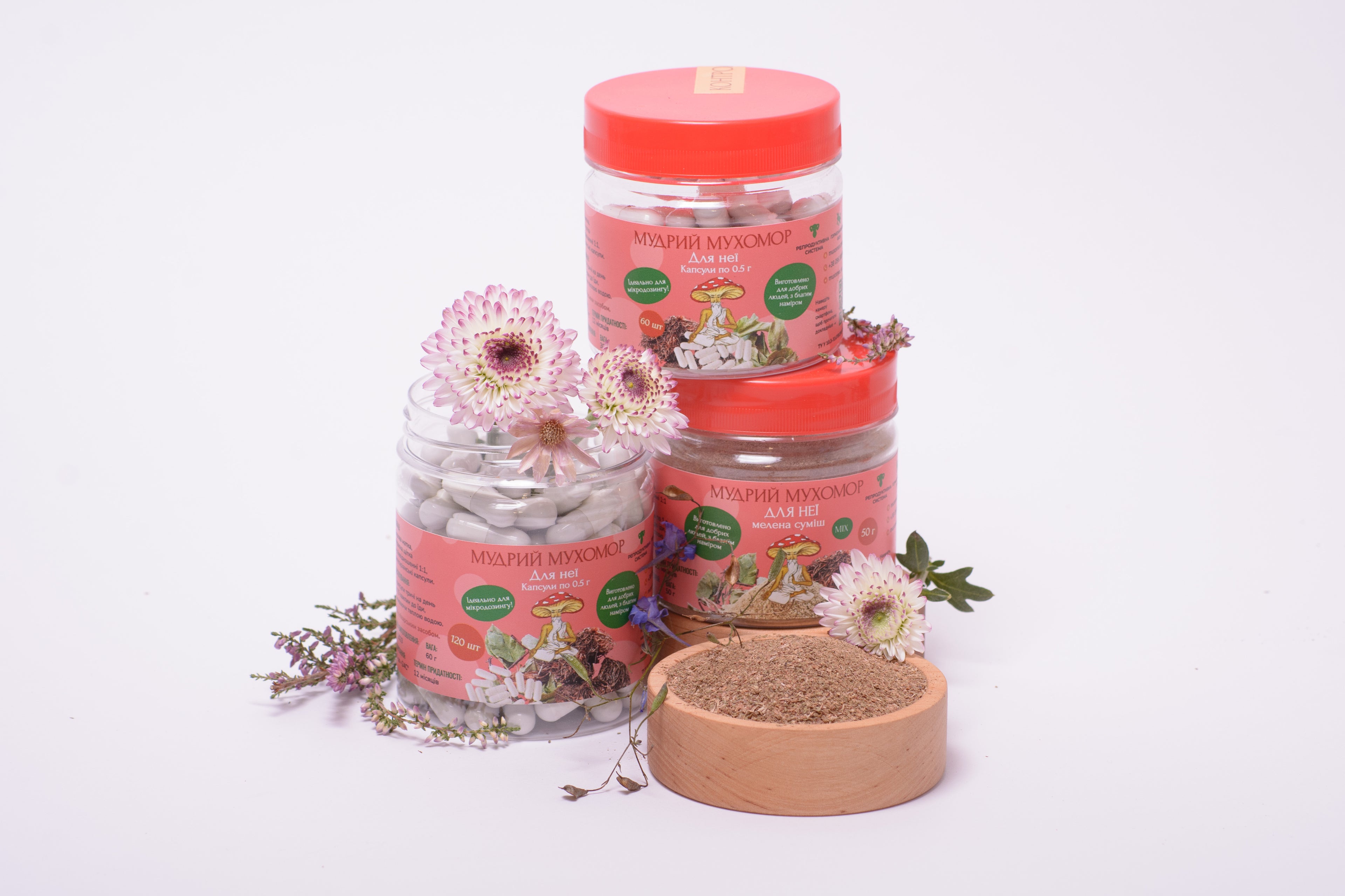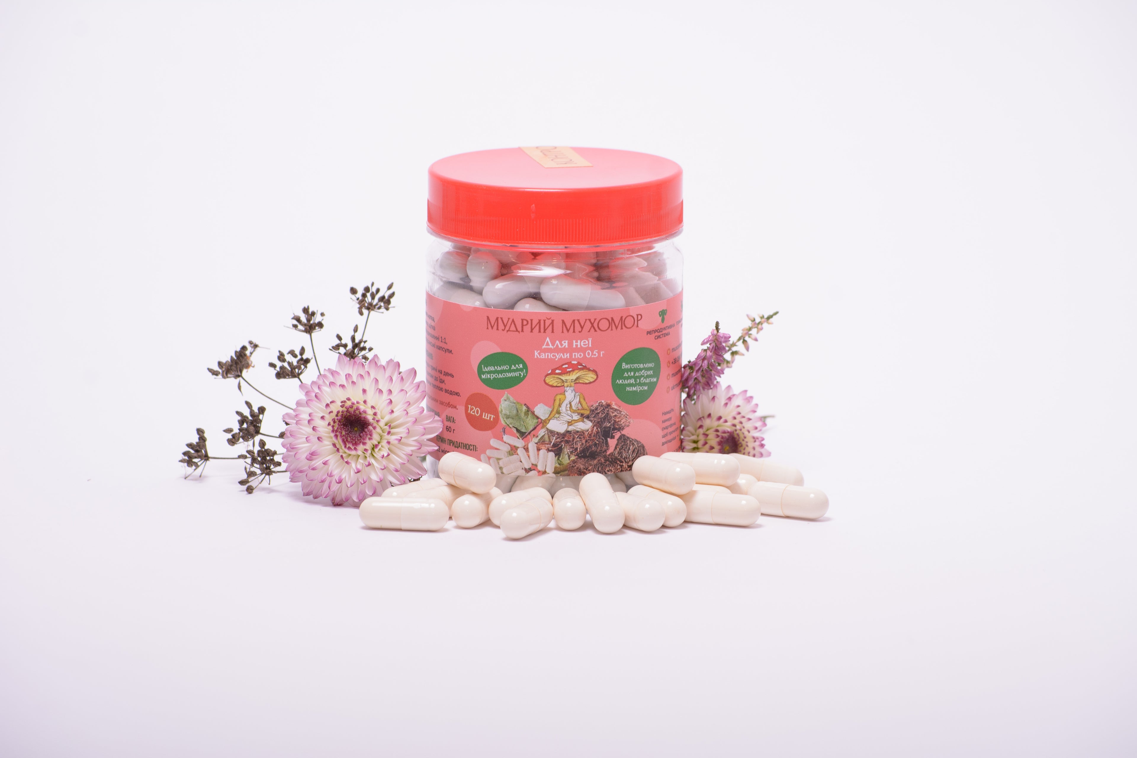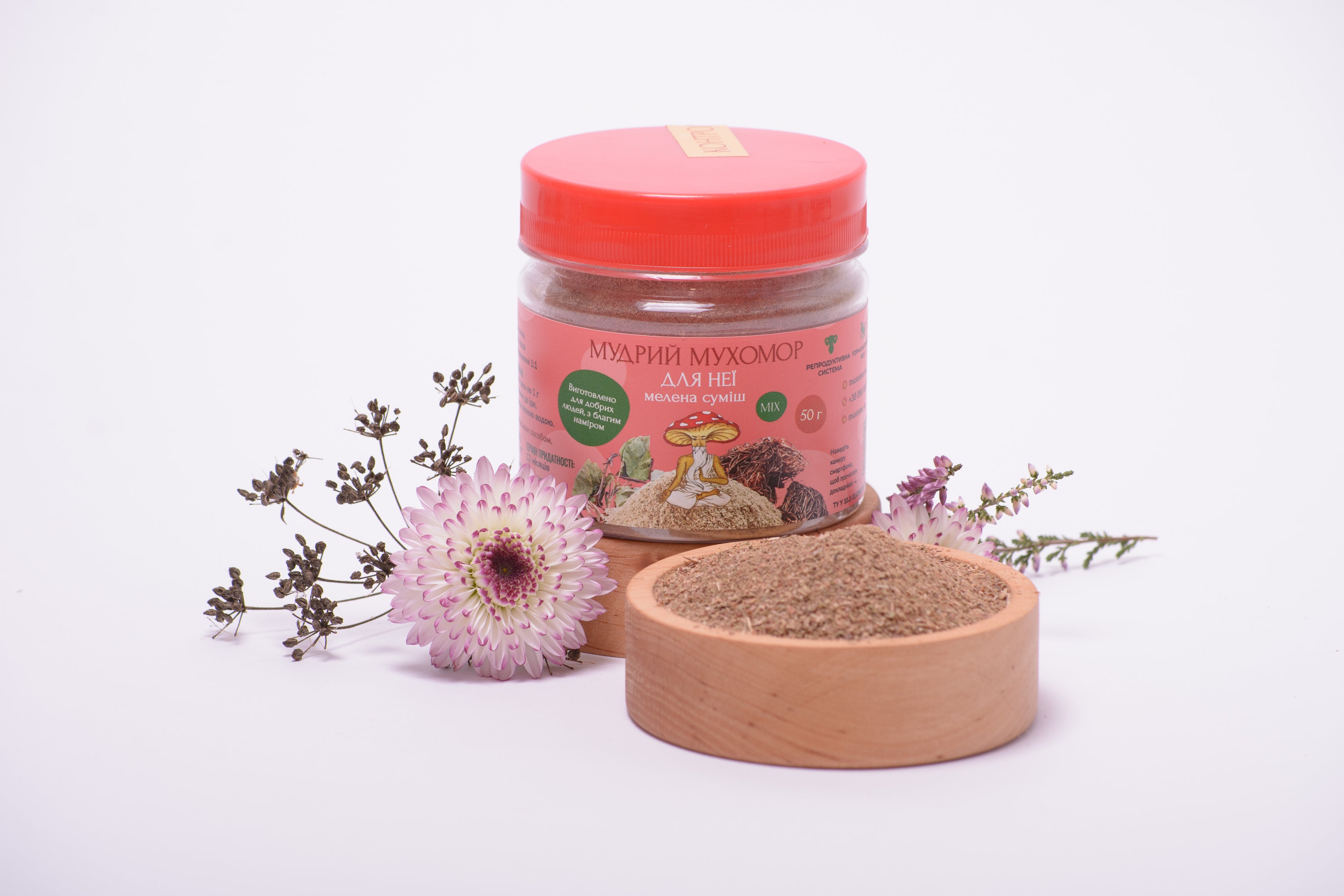 Завдяки своїм активним біохімічним компонентам вони здатні позитивно впливати на жіночий організм, тож головне призначення суміші — підтримувати репродуктивне жіноче здоров'я, допомагати при багатьох гінекологічних проблемах. Тому мікс має свою назву — «Для неї», і на сайті «Мудрого мухомора» йому присвячена окрема сторінка.