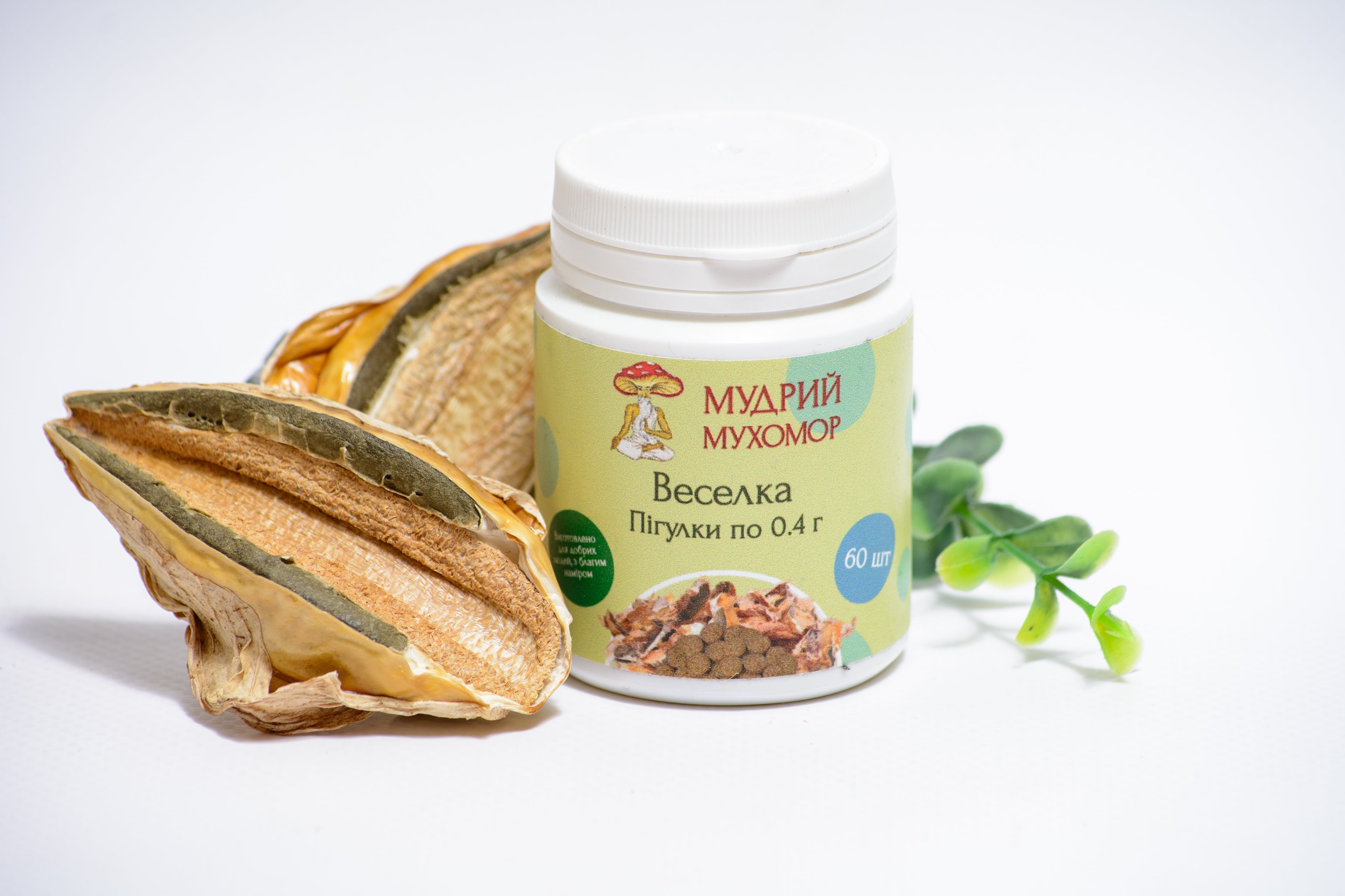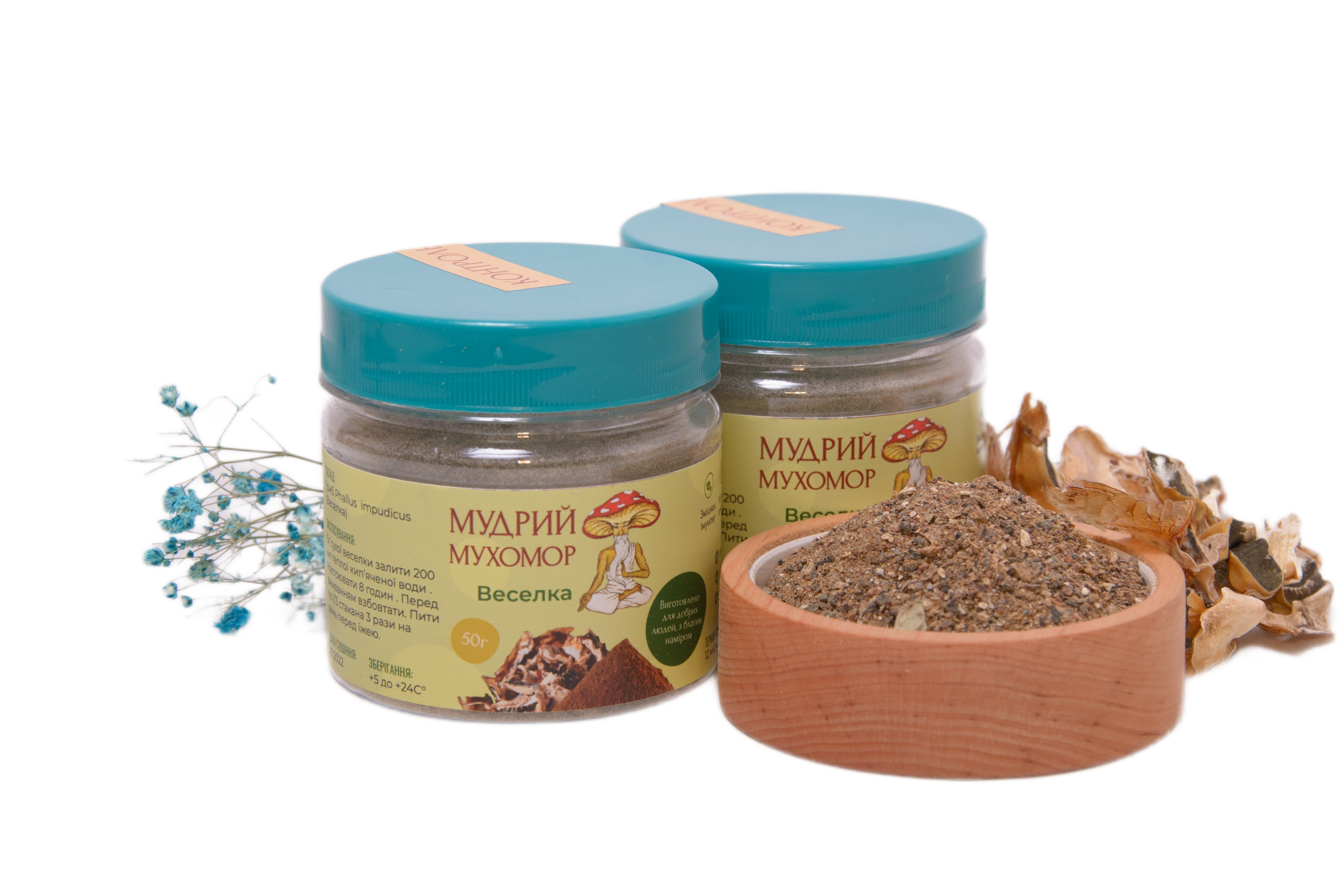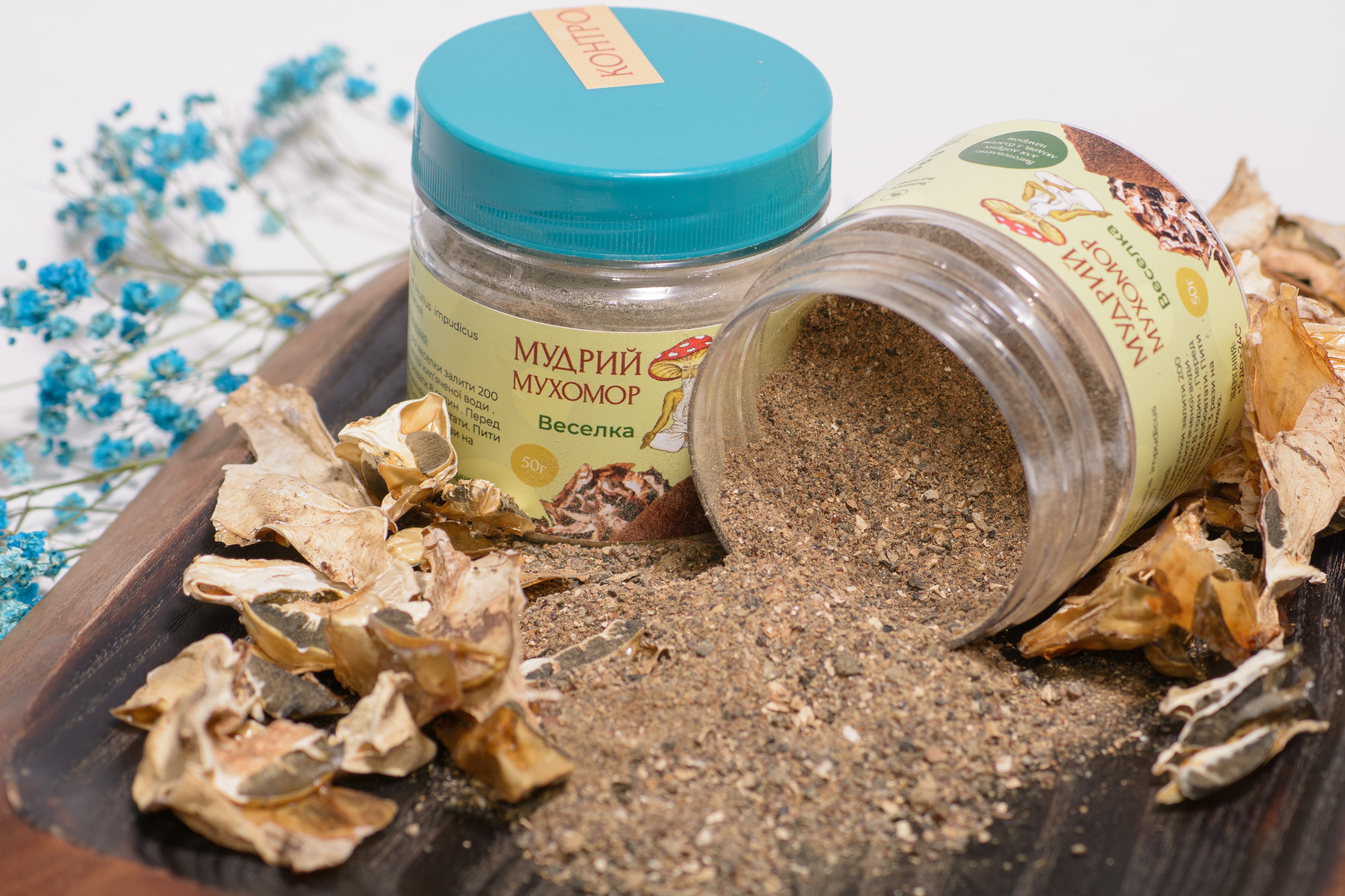 Асортимент продукції з гриба Веселка, який пропонує «Мудрий мухомор», включає різноманітні форми для зручності використання. Ти можеш обрати сушені плодові тіла (як у цілому вигляді, так і мелені в порошок). Разом з тим, в моєму магазинчику є капсули, пігулки і спиртова настоянка Веселки.